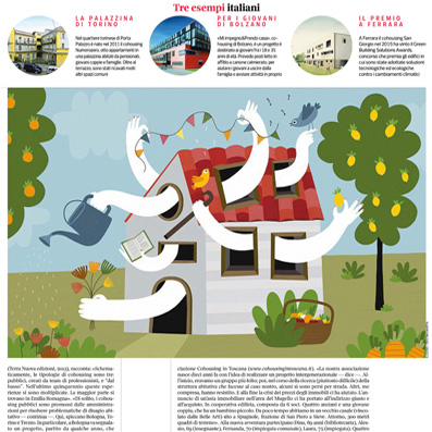 A whimsical and symbolic editorial illustration exploring the concept of cohousing and community-driven living.