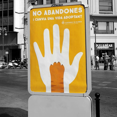 A powerful visual metaphor designed for a public awareness campaign promoting animal adoption.