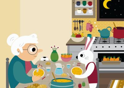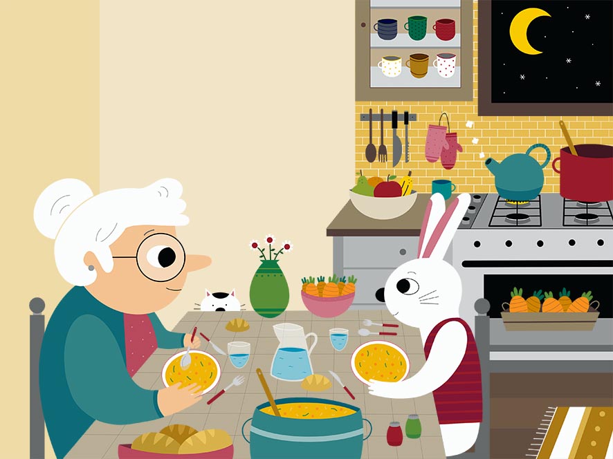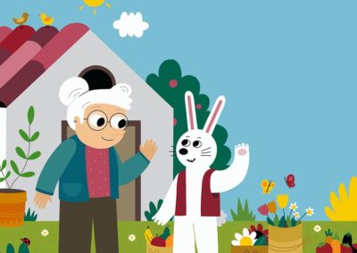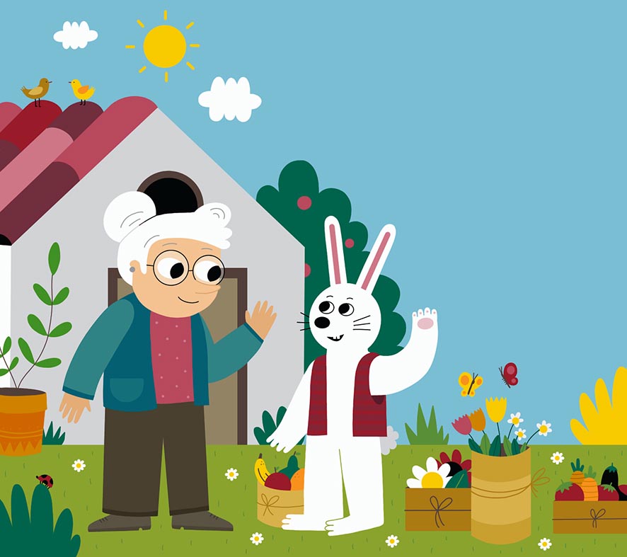 Commissioned by a Singaporean education company, this series of illustrations was created to help children learn English through visual context. The project features a warm and relatable narrative involving a grandmother and a rabbit character in various domestic and outdoor settings. My focus was on creating clear, detail-rich scenes—from a busy kitchen to a blooming garden—that allow educators to point out objects and actions, making the learning process intuitive, engaging, and visually stimulating.