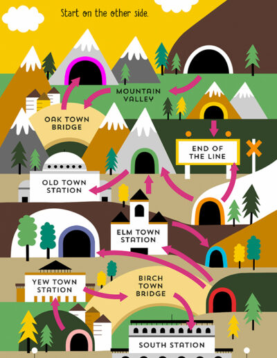 Following the success of the “Plane” edition, this collaboration with Usborne (UK) focused on the world of railways. The project required a blend of technical accuracy and whimsical storytelling, creating infographics about high-speed trains alongside complex logic puzzles and station-to-station mazes. My work involved translating engineering concepts (like Maglev and Bullet trains) into engaging visuals for children, ensuring that every interactive element was both aesthetically pleasing and pedagogically sound.