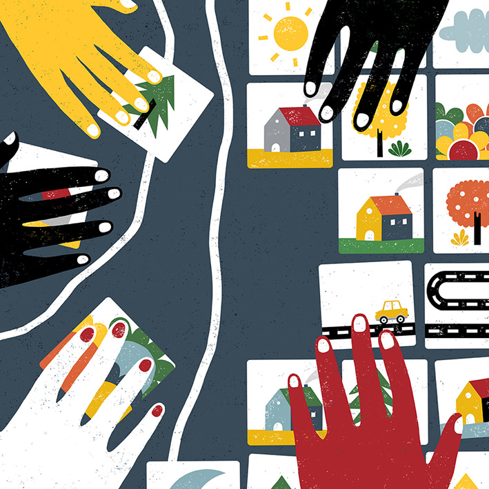 This artwork was developed for “Torn,” an initiative aimed at bringing support and visibility after the tragic earthquake that struck the village of Amatrice, Italy. The design features diverse hands interacting with fragments of a community—houses, trees, and roads—symbolizing the collective effort and solidarity required to rebuild and heal after a natural disaster. The piece utilizes organic textures and a symbolic palette to convey a message of hope and resilience.