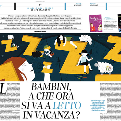 A whimsical and conceptual editorial illustration exploring the challenges of children’s sleep schedules during holidays.