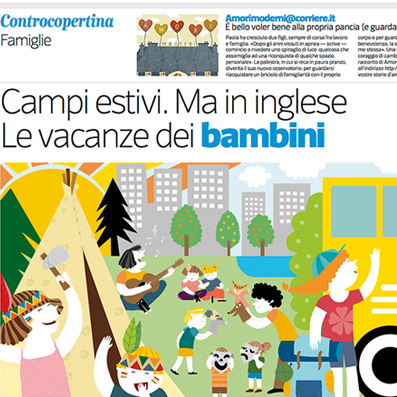A vibrant narrative illustration capturing the energy and diversity of children’s summer camp experiences.