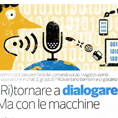 A conceptual visual metaphor on the evolution of human-machine communication through voice technology.